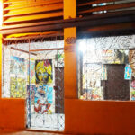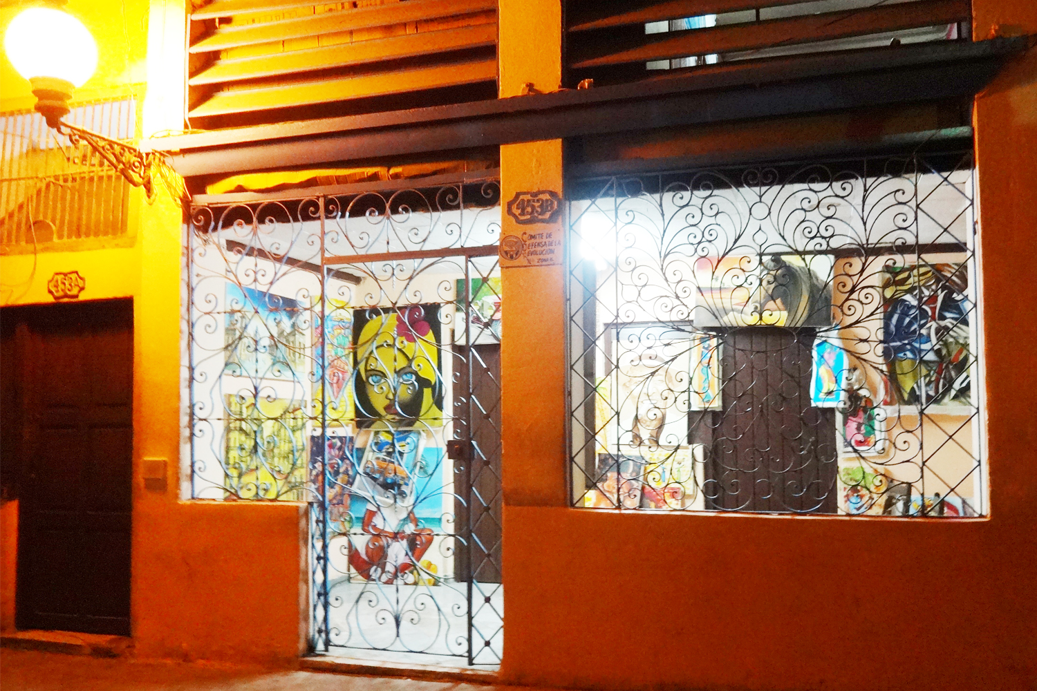 次第に夜も更けてきたが、オビスポ通りにはそぞろ繁華街に向かう人たちの姿が。日本の夏の夜を思い起こさせる、ゆったりとして抒情味たっぷりの雰囲気で、確かに危険な感じはしない。しばらく歩くと石畳の通りに椅子を並べた野外カフェが賑わっていた。シャッターを閉じた画廊もどこか魅力たっぷり。