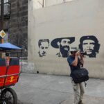 ハバナの街中を歩いていると、通りの外壁でもカフェやバーの店内でも三人の肖像写真を見かける。一人はヘミングウェイであり、もう一人は、フィデル・カストロ(1926/8/13~2016/11/25)。ただ、見かける頻度で言えば、三人目の男が二人を圧倒している。