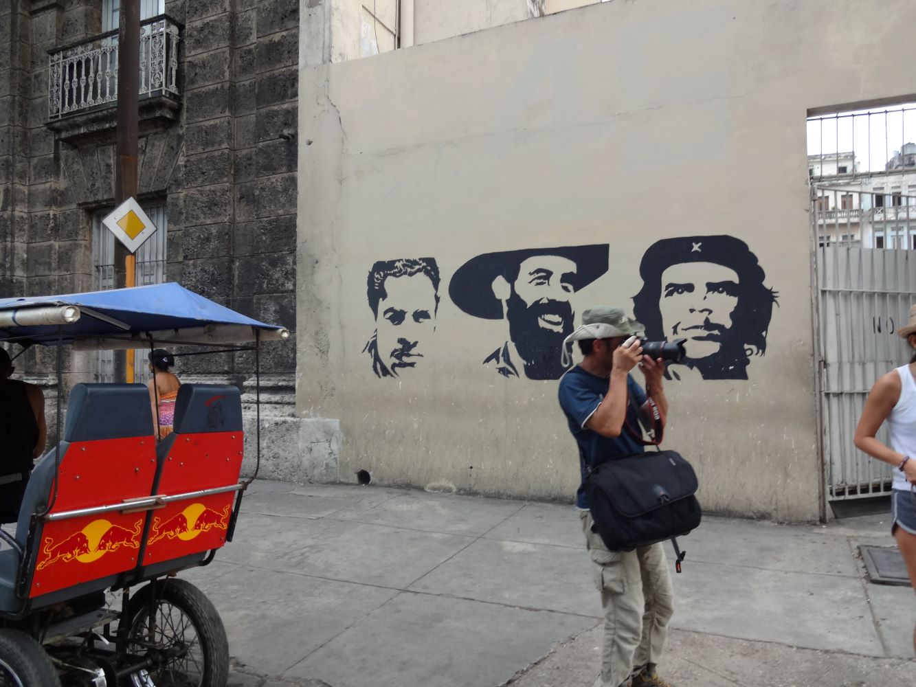 ハバナの街中を歩いていると、通りの外壁でもカフェやバーの店内でも三人の肖像写真を見かける。一人はヘミングウェイであり、もう一人は、フィデル・カストロ(1926/8/13~2016/11/25)。ただ、見かける頻度で言えば、三人目の男が二人を圧倒している。