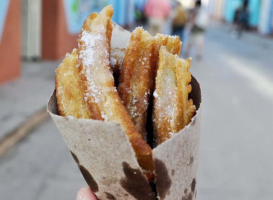 邸宅を出てしばらく歩いていると、屋台(写真10)に行き当たった。揚げパン風の菓子チュロス(写真11)だ。50円ほどで盛りだくさん。それをつまみながら、ゲバラの時代を想った。