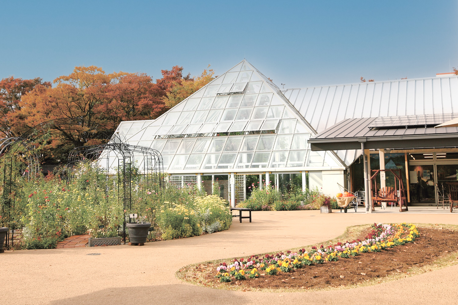 四季折々の草花・花木が楽しめるガーデンや、観葉植物等で緑あふれる温室「ピラミッドギャラリー」。