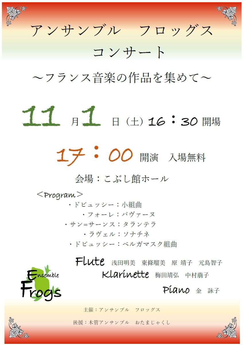 アンサンブルフロッグス〝フランス音楽の作品を集めて〟