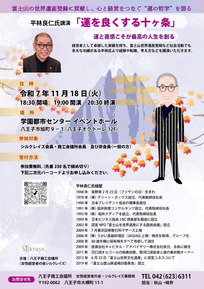 問い合わせ先 | 八王子商工会議所 女性経営者の会・シルクレイズ事務局 |