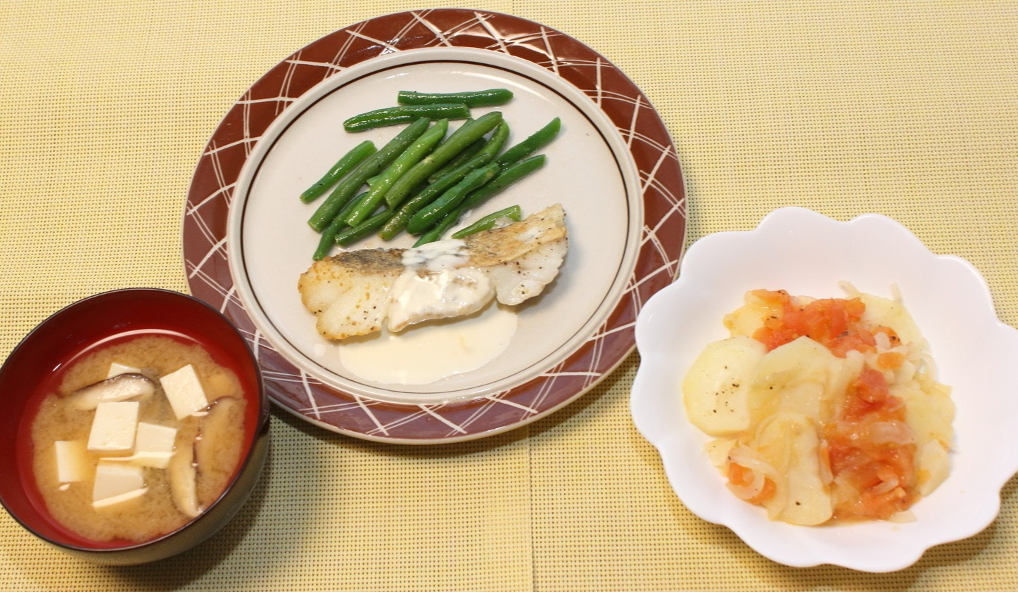 加えて、ジャガイモと玉ねぎとトマトの重ね煮。いつもある材料で作る洋風料理です。