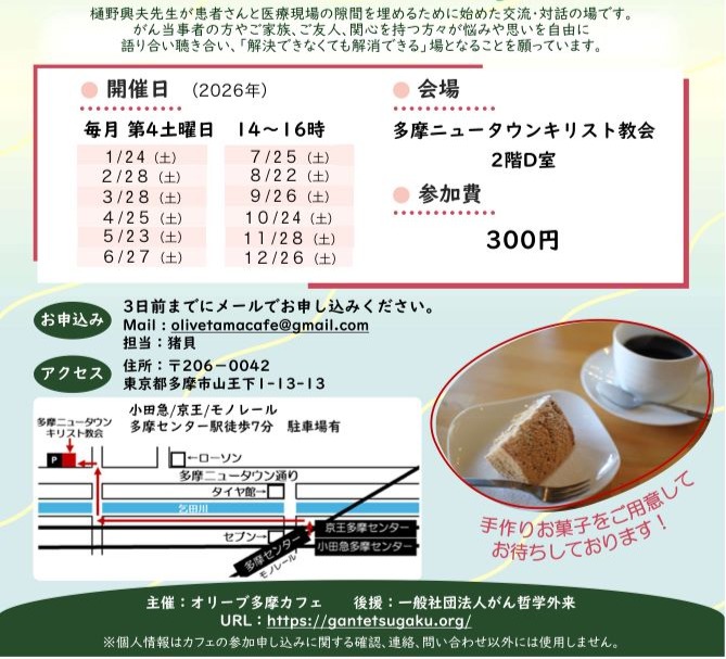 がん哲学外来 オリーブ多摩カフェ(毎月第4土曜)