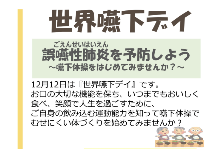 世界嚥下デイ「誤嚥性肺炎を予防しよう~嚥下体操をはじめてみませんか?~」