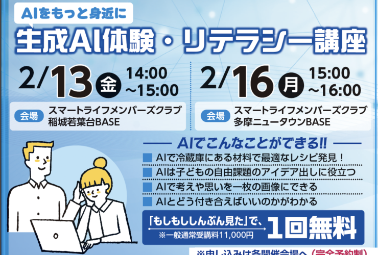 ★「『もしもし』見た」で、『スマートライフメンバーズクラブプレミアム会員』未加入の方は1回無料で受講いただけます。(一般通常受講料3,300円)