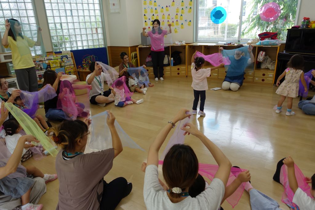 毎回、2歳という年齢に合わせた、ごっこ遊び、運動遊び、折り紙遊び、お絵かきなど独自のカリキュラムを豊富に用意し、さまざまな遊びの体験ができるようになっています。