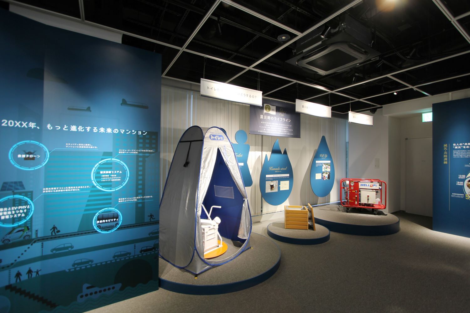 そしてミュージアム館内のゾーン09「マンション防災」のコーナーも自由に見学OK。マンションだからできる防災をテーマに、災害の歴史、マンションと災害対策の進化、各マンションの共助、未来の防災マンションまで、動画やパネルで見ることができます。
