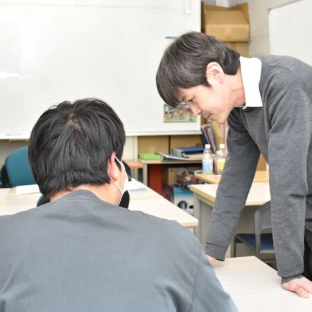 授業は、一人ひとりの考え方を尊重して進めていく、双方向の対話形式のスタイル。