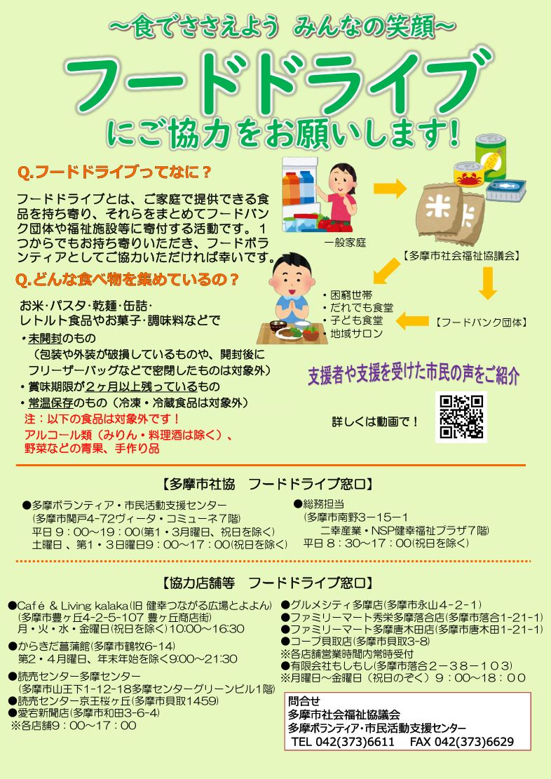 これは、多摩センターでこれまで「フードドライブ」を取り扱っていた店舗が閉店したことで、「どこに持っていったらいいの?」という読者の声にこたえての取り組みです。